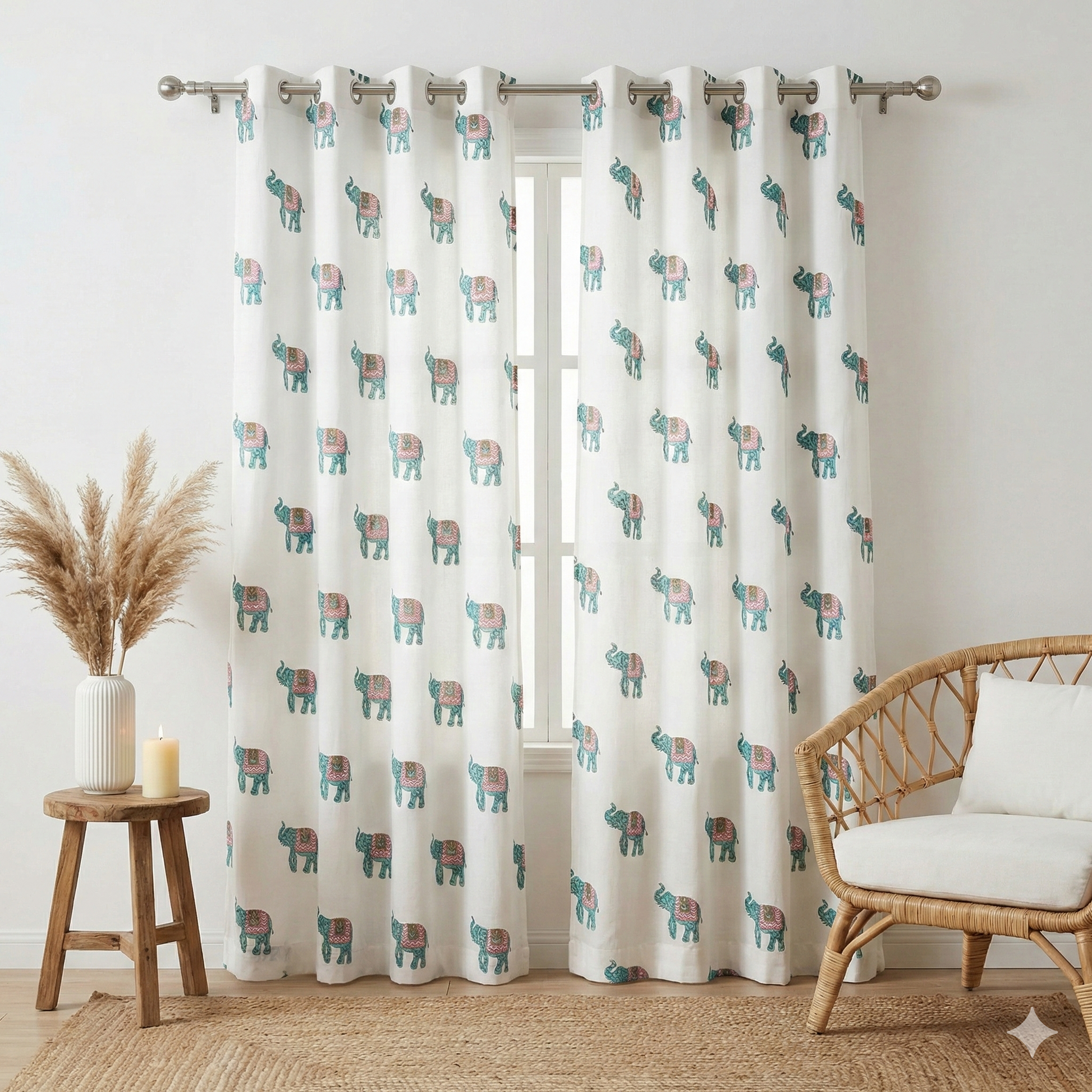 Blue Elephant Handblock Curtains