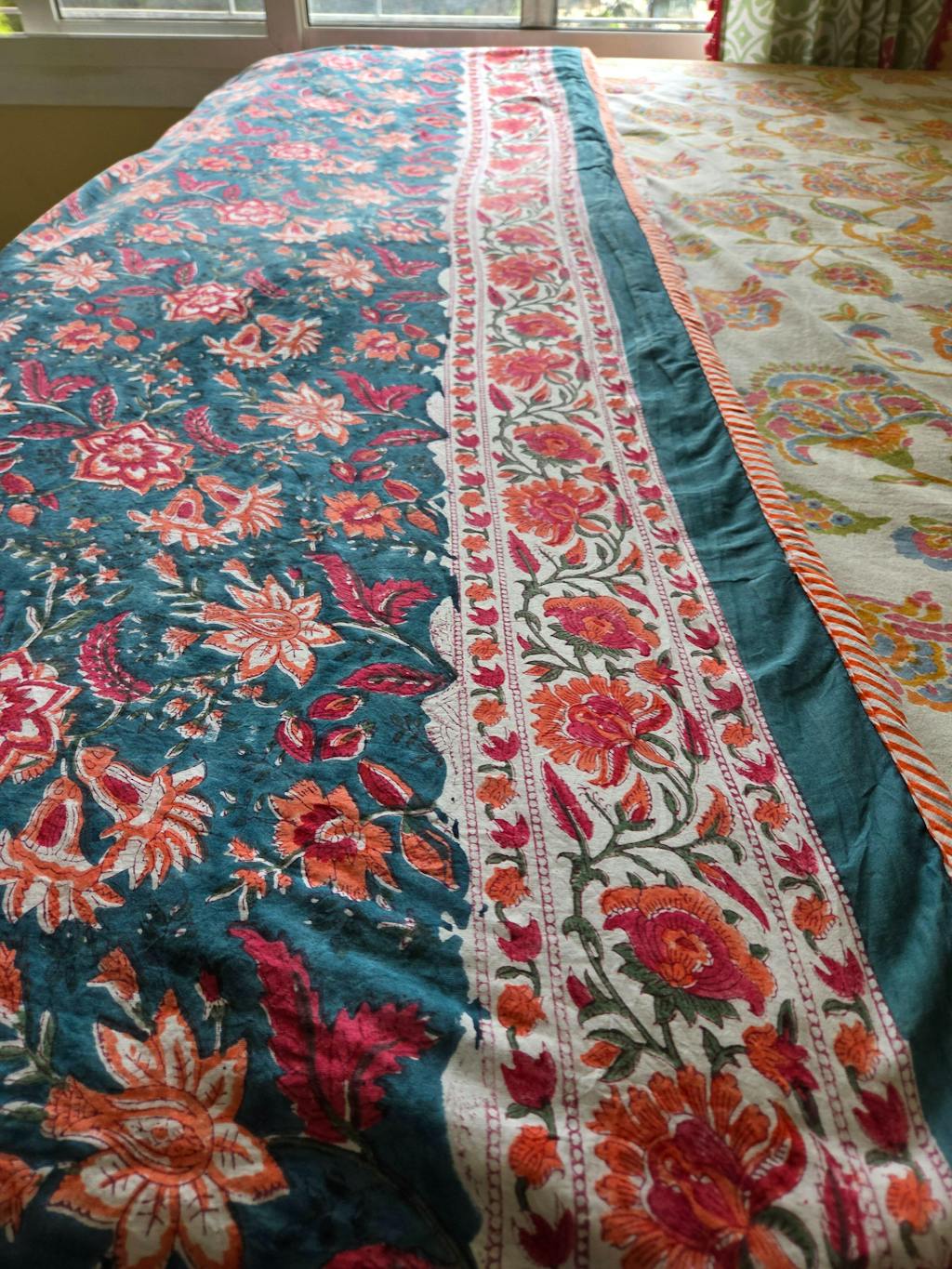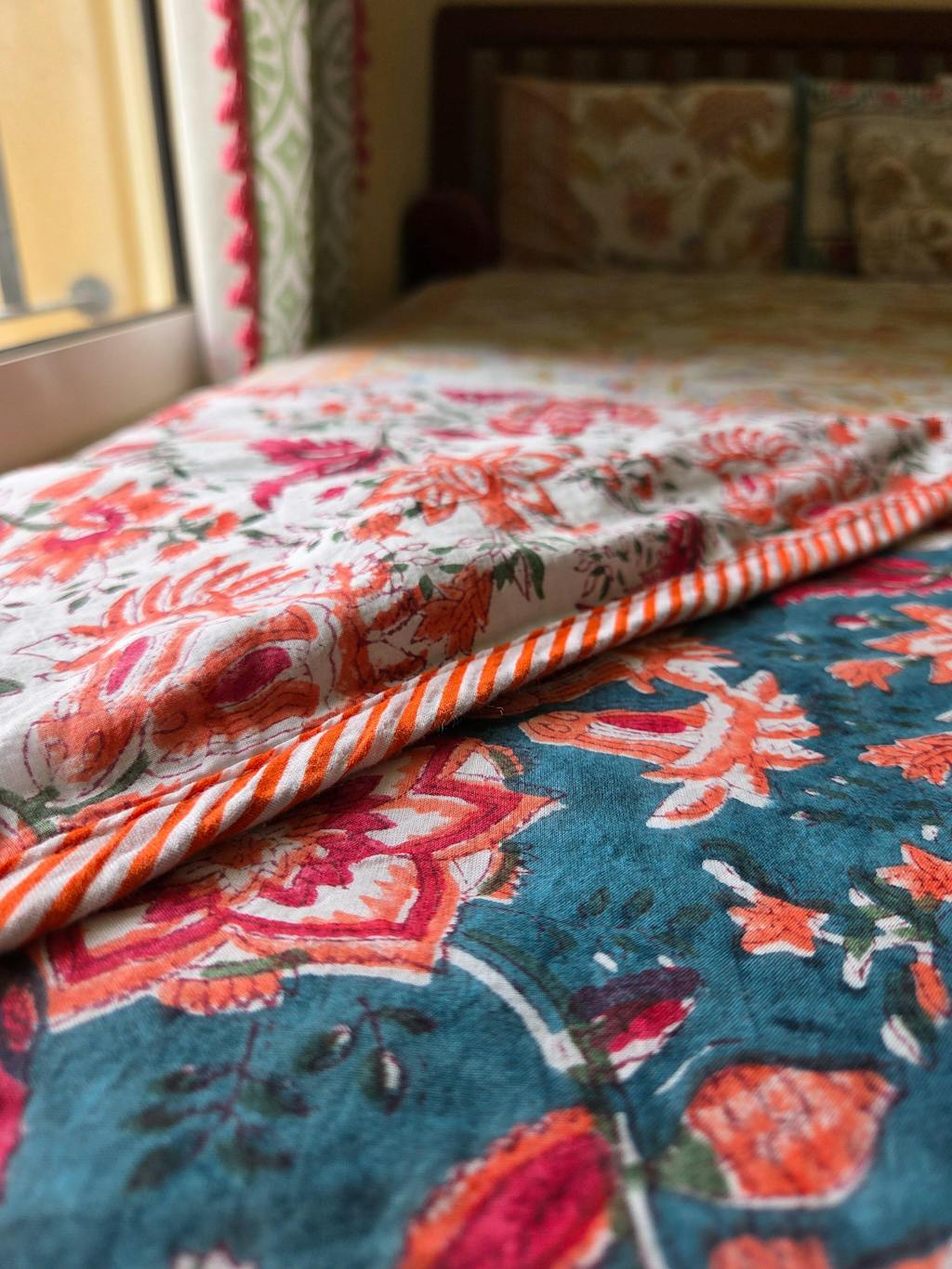 Gul-Mohar Handblock Mulmul Cotton Reversible Dohar