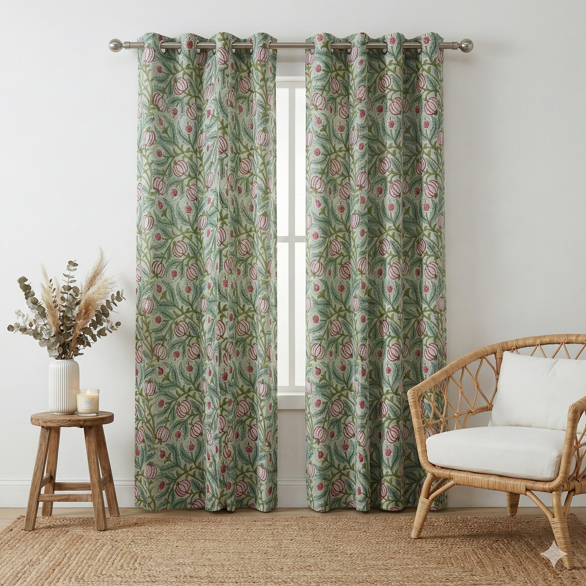 Red Anaar Handblock Curtains