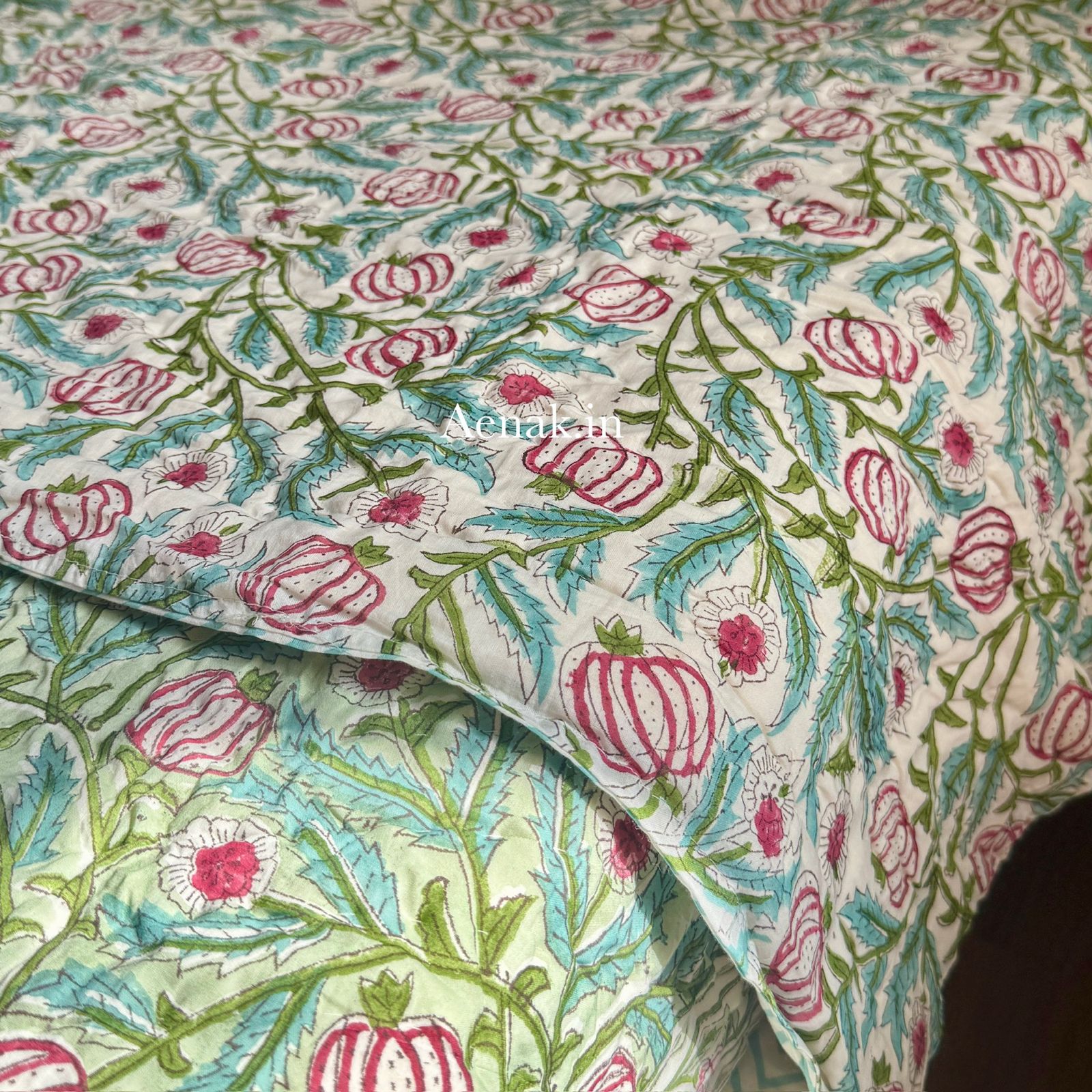 Red Anaar Handblock Reversible Mulmul Cotton Quilt